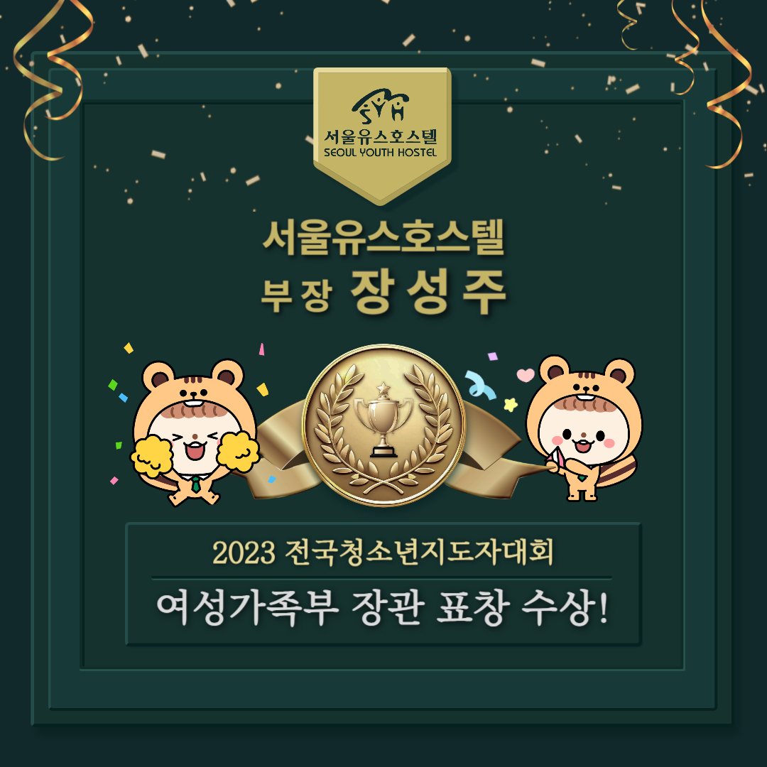 바로 어제! 12월 6일 국제청소년센터에서 진행된2023 전국청소년지도자대회 올해의 지도자상 시상식에서서울유스호스텔의 장성주 부장님이여성가족부 장관 표창을 수상하였습니다!🎊🏆
